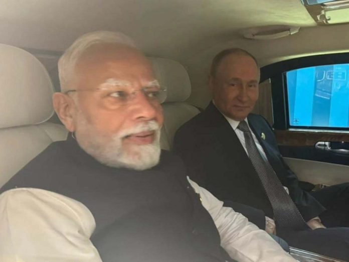 చైనా టియాన్ జిన్ SCO శిఖరాగ్ర సదస్సు అనంతరం ప్రధాని మోదీ, రష్యా అధ్యక్షుడు పుతిన్ ఒకే కారులో ప్రయాణించారు. ద్వైపాక్షిక సమావేశ ప్రదేశానికి ఇలా వీరిద్దరూ కలిసి ఒకే కారులో వెళ్లినట్లుగా తెలుస్తోంది. ఈ సమావేశంలో అమెరికా అధ్యక్షుడు ట్రంప్ ప్రతీకార సుంకాలకు చెక్ పెట్టేందుకు పరస్పర సహకారంపై చర్చలు జరిగే అవకాశాలు ఉన్నట్లుగా తెలుస్తోంది. SCO సదస్సులో ఉగ్రవాదానికి వ్యతిరేకంగా తీర్మానం చేశారు. కాగా మోదీ, పుతిన్ మధ్య ఆసక్తికరమైన చర్చలు జరిగాయి.